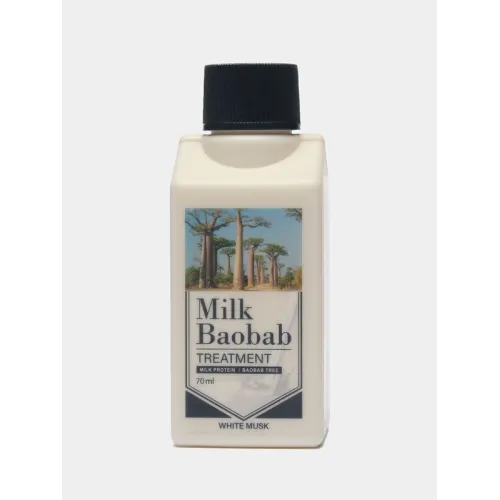 Питательный бальзам для волос MilkBaobab Treatment White Musk Travel Edition объёмом 70 мл создан для укрепления и восстановления структуры волос. Он поддерживает естественный уровень pH 5,5 и водно-жировой баланс кожи головы, что делает его подходящим для всех типов волос. Приятный аромат белого мускуса добавляет процедуре ухода за волосами нотку утончённости.