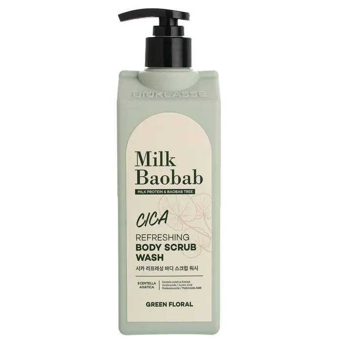 Гель-скраб для душа MilkBaobab Cica Body Scrub Wash — это инновационное средство 2 в 1, которое сочетает в себе свойства геля для душа и скраба. Продукт эффективно отшелушивает омертвевшие клетки кожи благодаря натуральному эксфолианту из молотой скорлупы грецких орехов. Гель-скраб бережно очищает кожу, поддерживая её естественный уровень pH 5,5 и водно-жировой баланс. Обогащённый центеллой азиатской, продукт успокаивает кожу и придаёт ей свежесть. Свежий цитрусовый аромат делает процесс использования ещё более приятным.