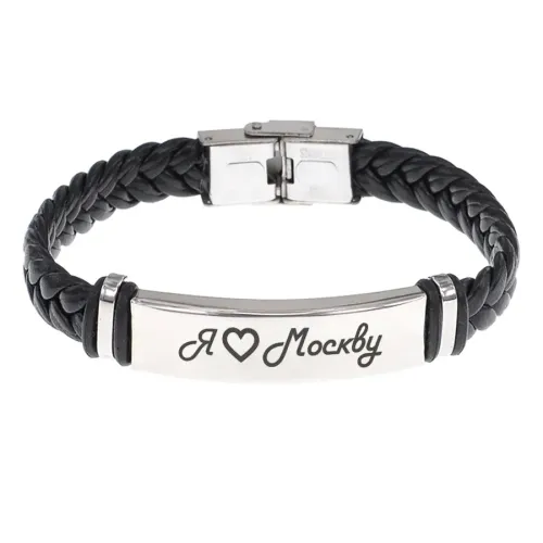 Кожаный браслет-сувенир с гравировкой «Я люблю Москву».