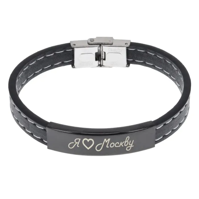 Кожаный браслет с гравировкой «Я люблю Москву».