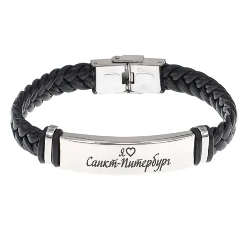 Кожаный браслет с гравировкой «Я люблю Санкт-Петербург».
