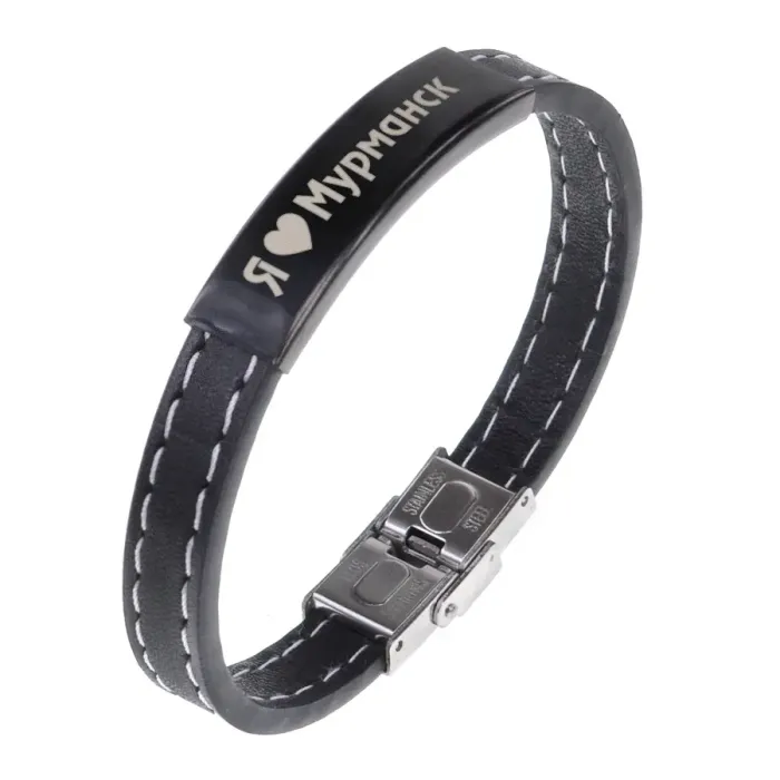 Кожаный браслет с гравировкой «Я люблю Мурманск».