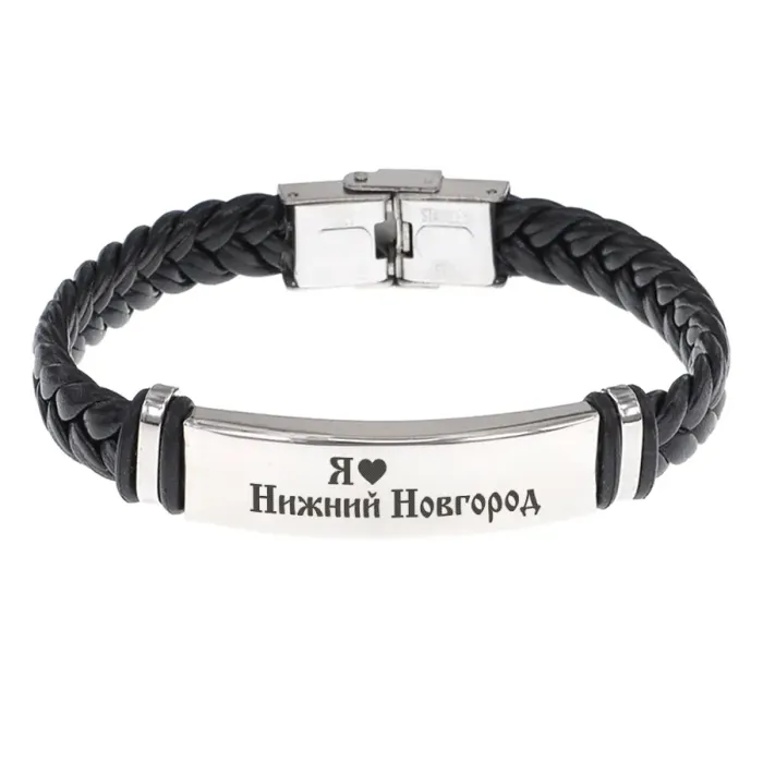 Кожаный браслет-сувенир с гравировкой «Я люблю Нижний Новгород».