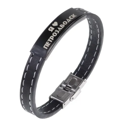 Кожаный браслет с гравировкой «Я люблю Петрозаводск» — сувенирный аксессуар.