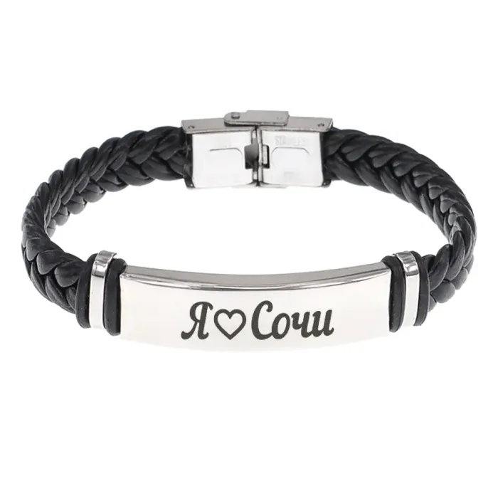 Кожаный браслет с гравировкой «Я люблю Сочи».