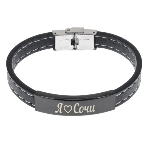 Кожаный браслет с гравировкой «Я люблю Сочи» — сувенирный аксессуар из экокожи и нержавеющей стали.