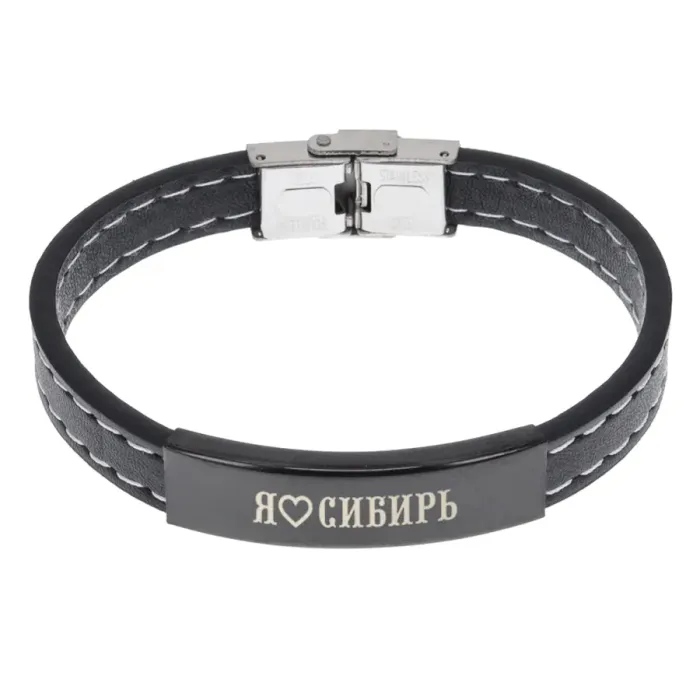 Кожаный браслет с гравировкой «Я люблю Сибирь».