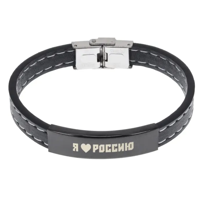 Кожаный браслет с гравировкой «Я люблю Россию» — сувенирный аксессуар.