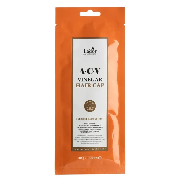 Маска-шапка для волос ACV Vinegar Hair Cap от Lador — инновационное средство по уходу за волосами, произведенное в Республике Корея. Это средство эффективно очищает кожу головы от остатков косметических средств благодаря высокому содержанию яблочного уксуса и экстракта яблока (по 40000 ppm каждый). Маска нормализует водно-липидный баланс, придавая волосам объем и естественный блеск. Оптимальный pH уровень способствует питанию и смягчению поврежденных волос.