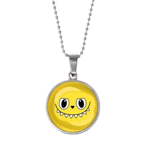 Кулон-сувенир из бижутерного сплава с серебристым покрытием и стеклянной линзой, созданный по мотивам Лабубу.