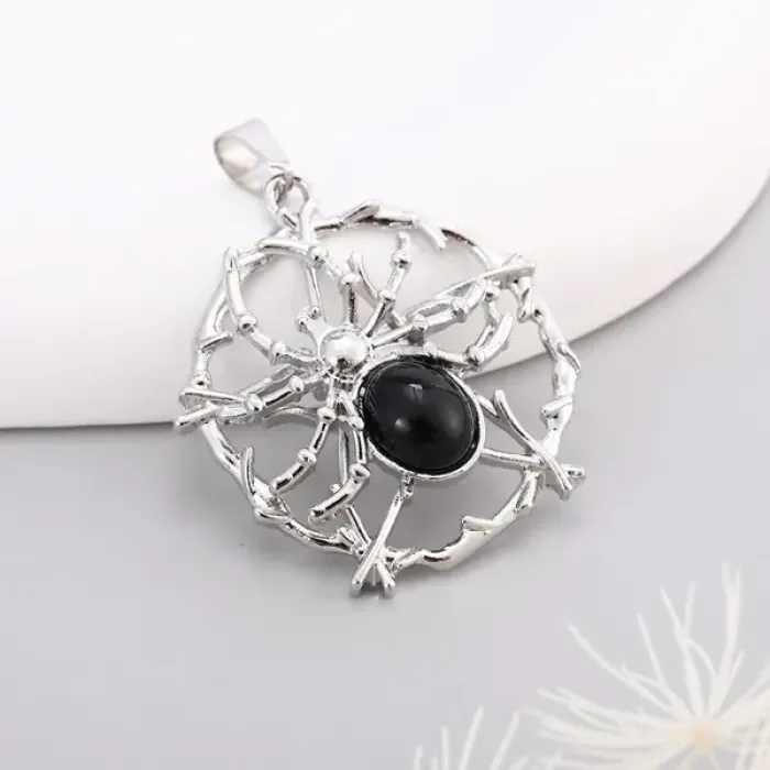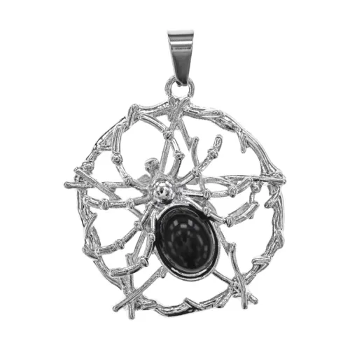 Кулон Паук — сувенирное украшение из бижутерного сплава с покрытием под серебро и вставкой из натурального чёрного агата.