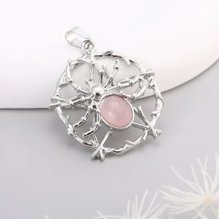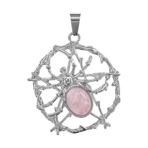 Кулон в виде паука с вставкой из натурального розового кварца.