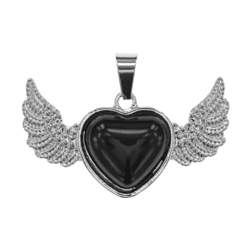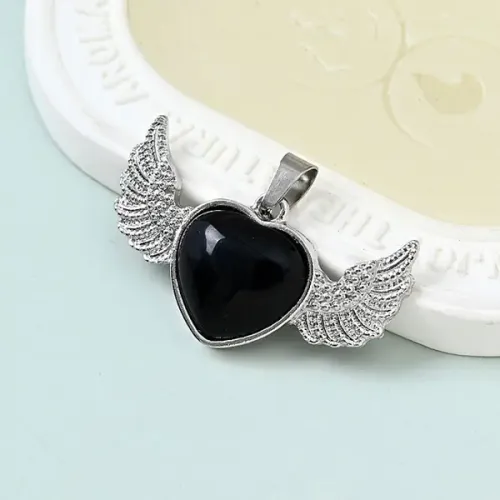 Кулон в форме сердца из натурального черного агата с металлической оправой.