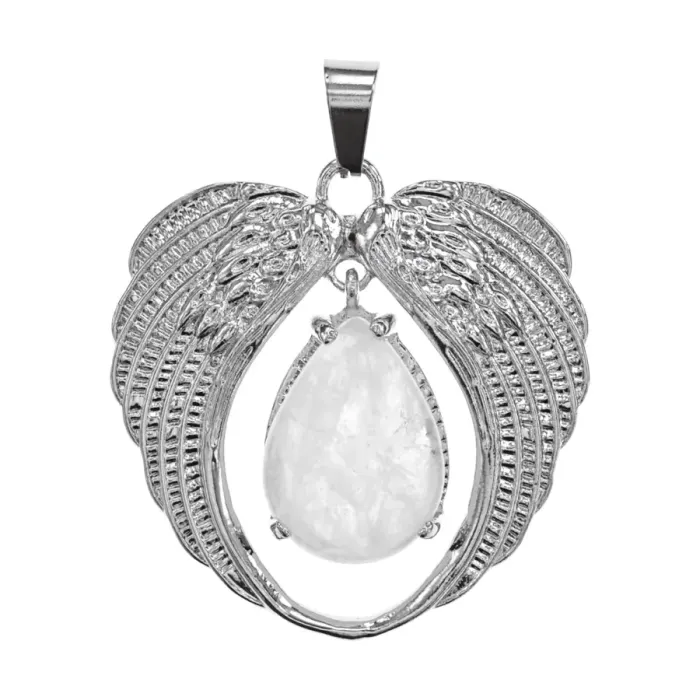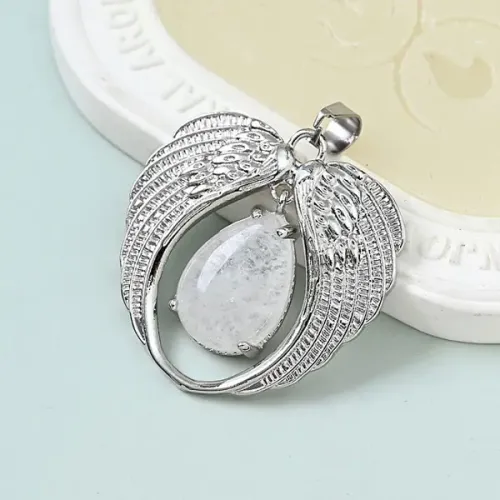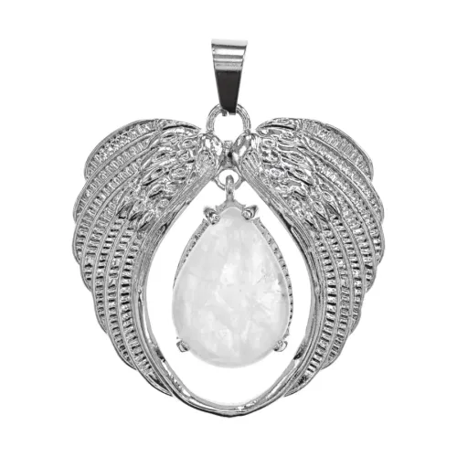 Кулон из бижутерного сплава с покрытием под серебро и вставкой из натурального горного хрусталя в форме крыльев ангела.