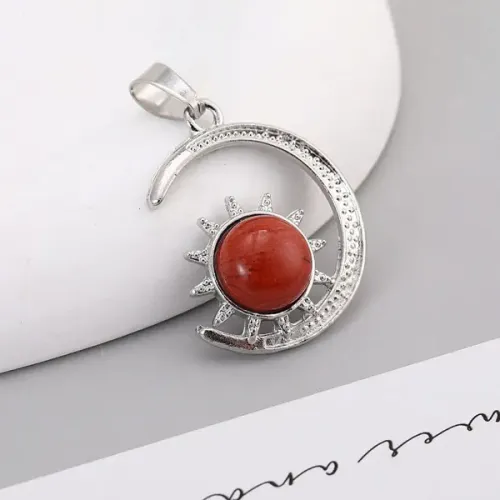 Кулон Полумесяц и Солнце, 3х2см, красная яшма BJK478-02