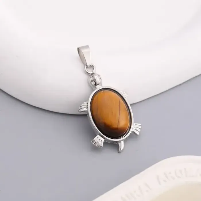 Кулон в форме черепахи из бижутерного сплава с вставкой из натурального камня.