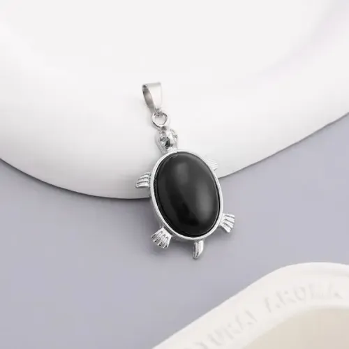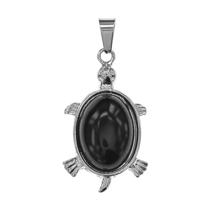 Кулон в виде черепахи из бижутерного сплава с вставкой из натурального чёрного агата.
