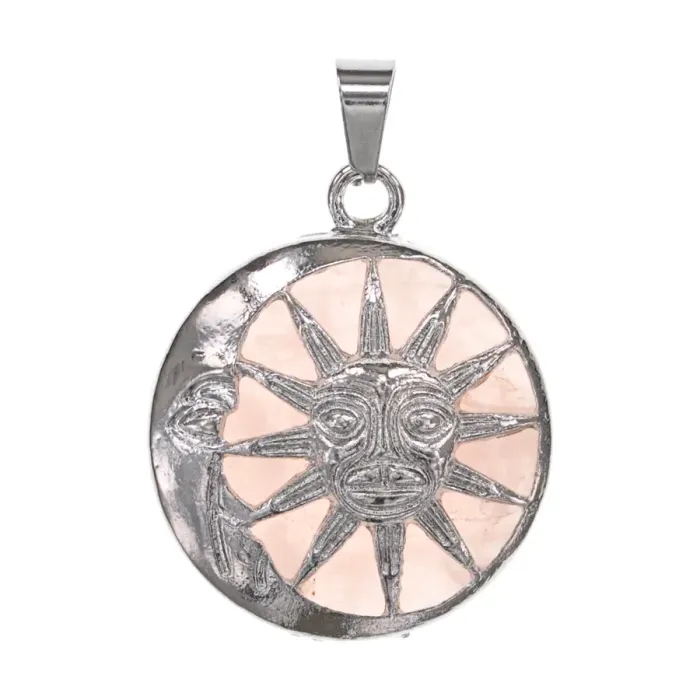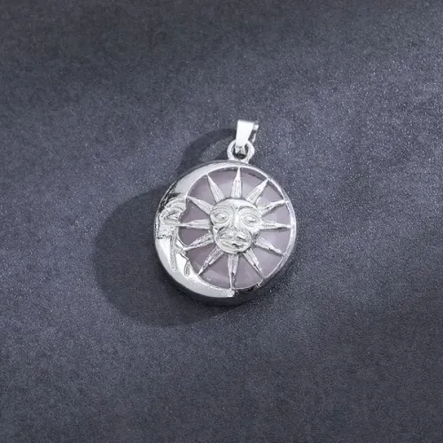 Кулон в виде полумесяца и солнца с вставкой из натурального розового кварца.