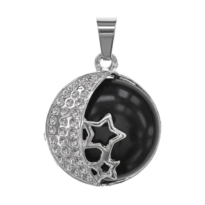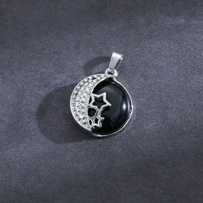 Кулон Две звезды и полумесяц, d.2см, черный агат BJK481-03