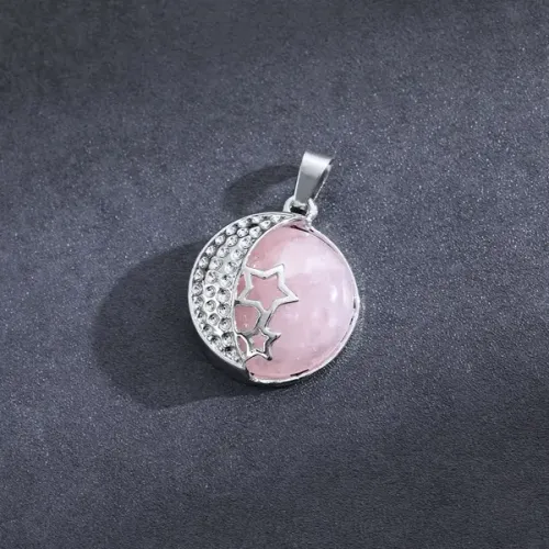 Кулон Две звезды и полумесяц, d.2см, розовый кварц BJK481-05