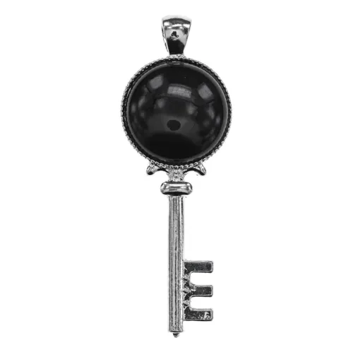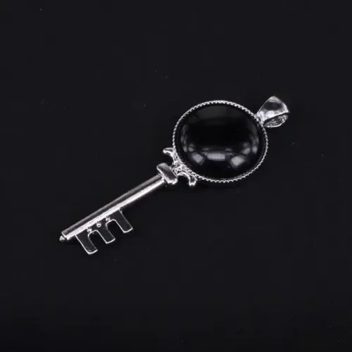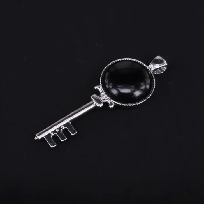 Кулон в виде ключа из бижутерного сплава с вставкой из натурального чёрного агата.