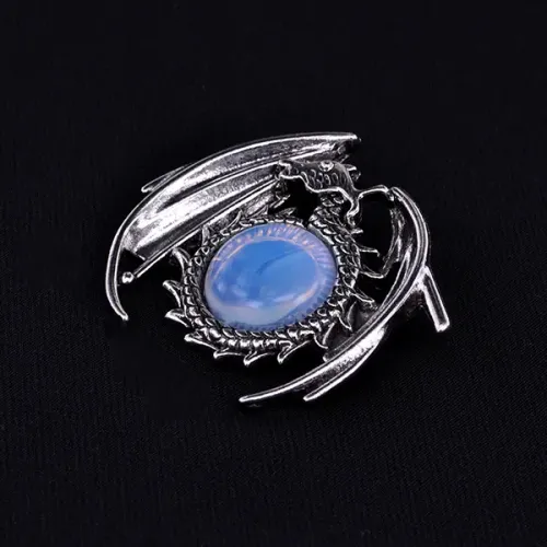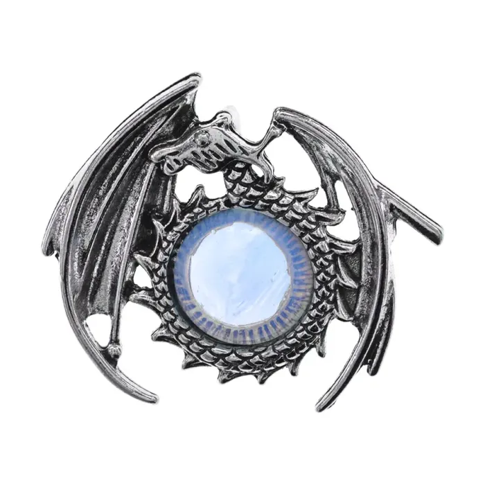 Кулон в виде дракона из бижутерного сплава с вставкой из синтетического лунного камня.