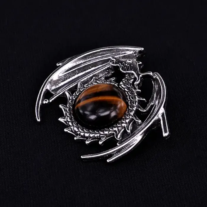 Кулон в виде дракона из бижутерного сплава с натуральной вставкой.