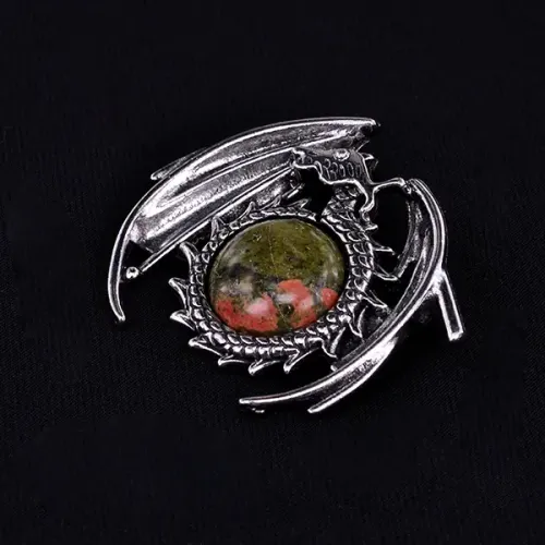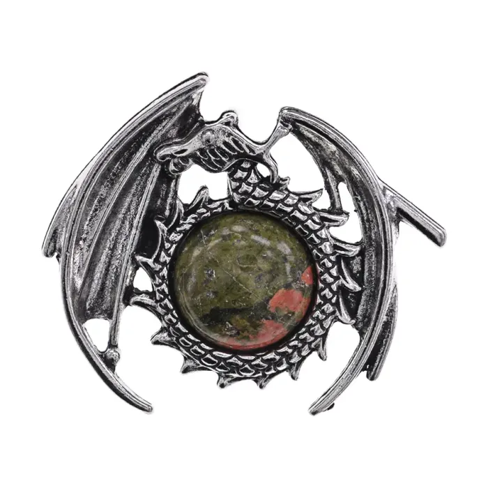 Кулон с вставкой из натурального унакита в форме дракона.