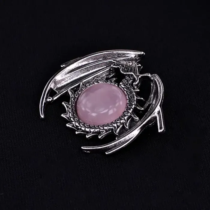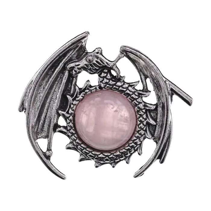 Кулон в виде дракона из бижутерного сплава с вставкой из натурального розового кварца.