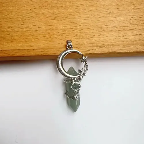 Кулон «Звёзды и полумесяц» из бижутерного сплава с нефритовой вставкой.