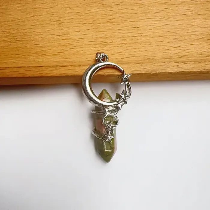 Кулон «Звёзды и полумесяц» из бижутерного сплава с вставкой из унакита.