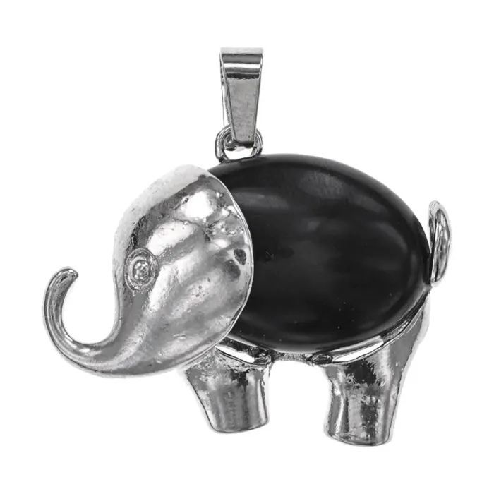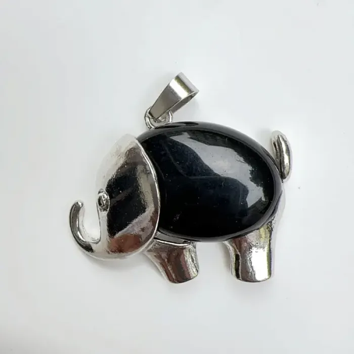 Кулон в виде слона из бижутерного сплава с вставкой из натурального чёрного агата.