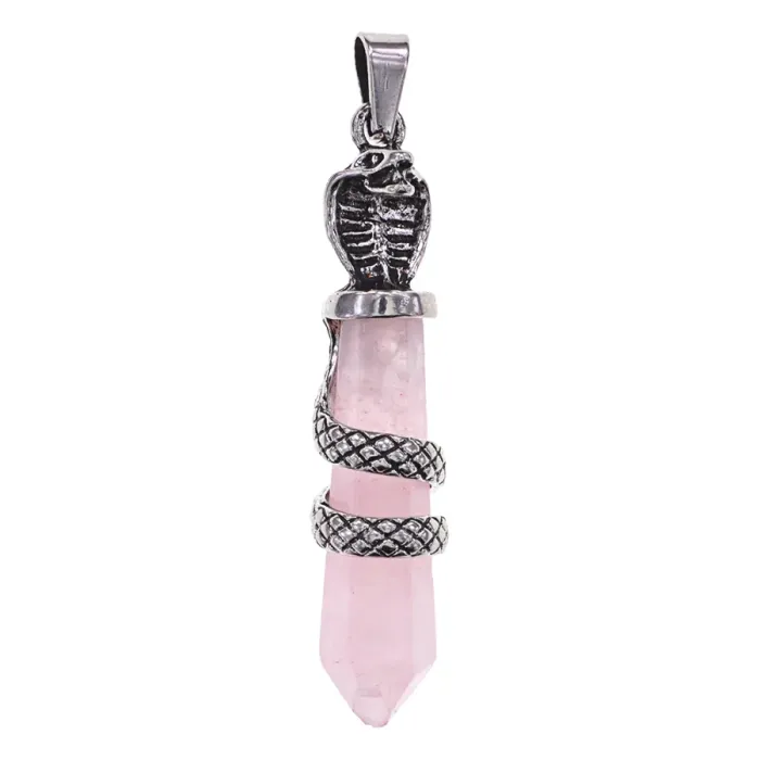 Кулон Змея, 4,5х1см, розовый кварц BJK492-02