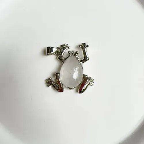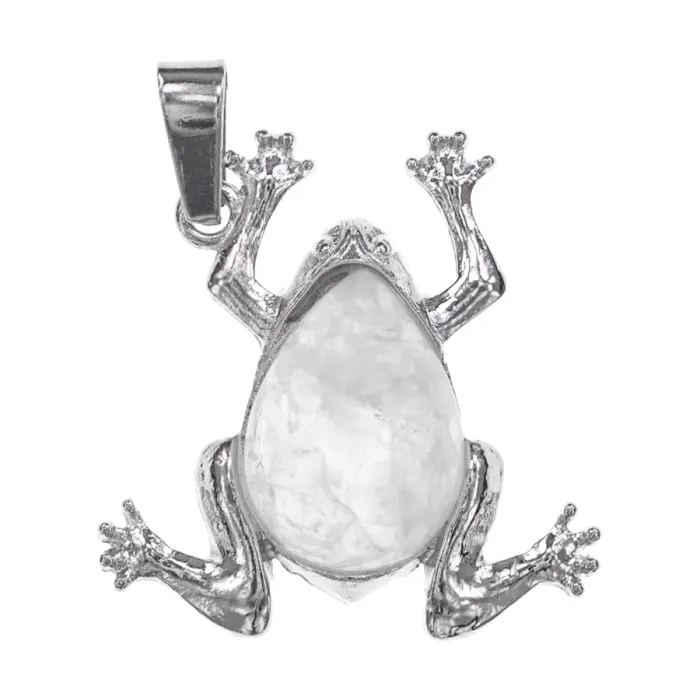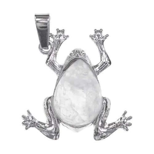 Кулон в виде лягушки из бижутерного сплава с вставкой из горного хрусталя.