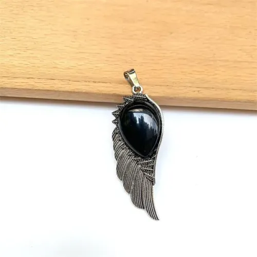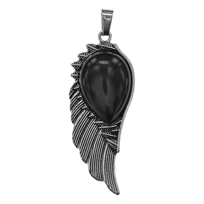 Кулон из бижутерного сплава с вставкой из натурального чёрного агата в форме крыла.