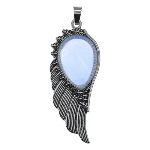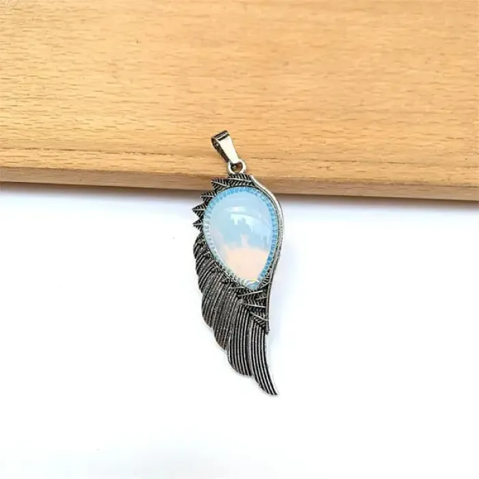 Кулон в виде крыла с вставкой из синтетического лунного камня.