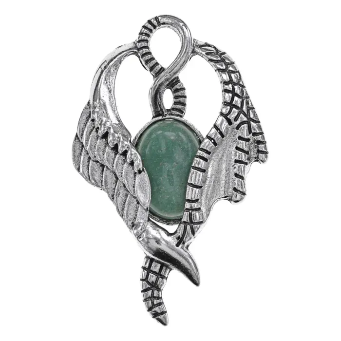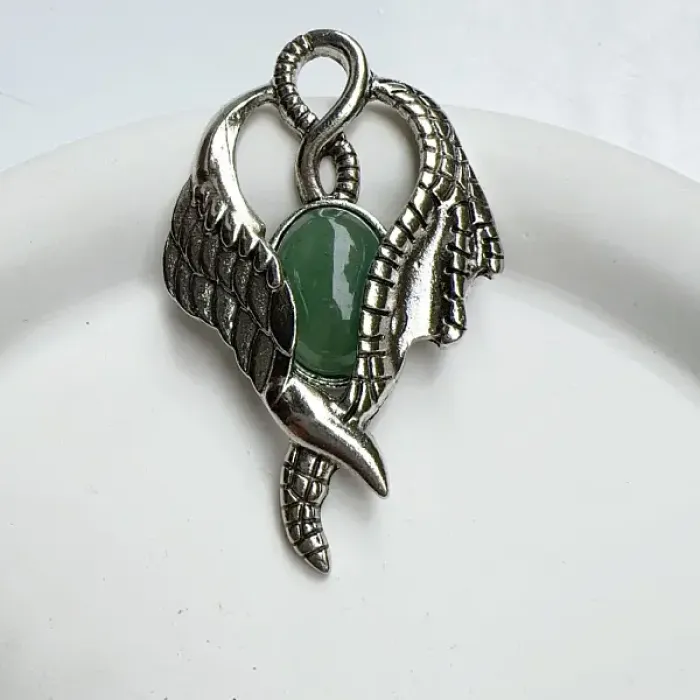 Кулон в виде крыльев из бижутерного сплава с вставкой из натурального нефрита.
