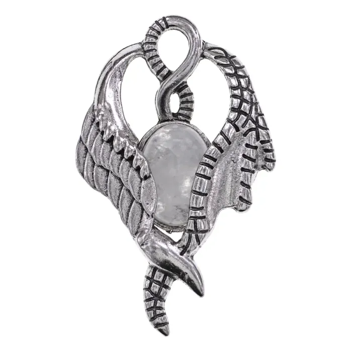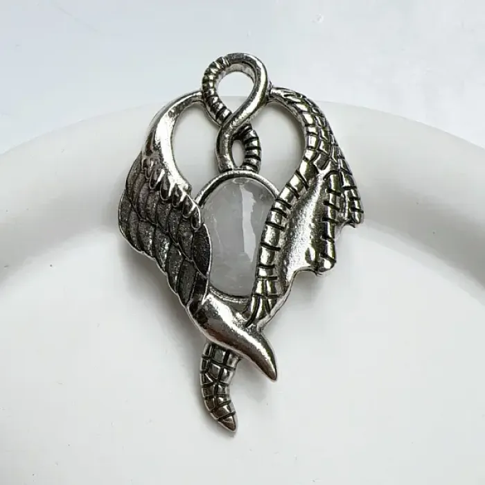 Кулон с дизайном в виде крыльев и вставкой из натурального горного хрусталя.