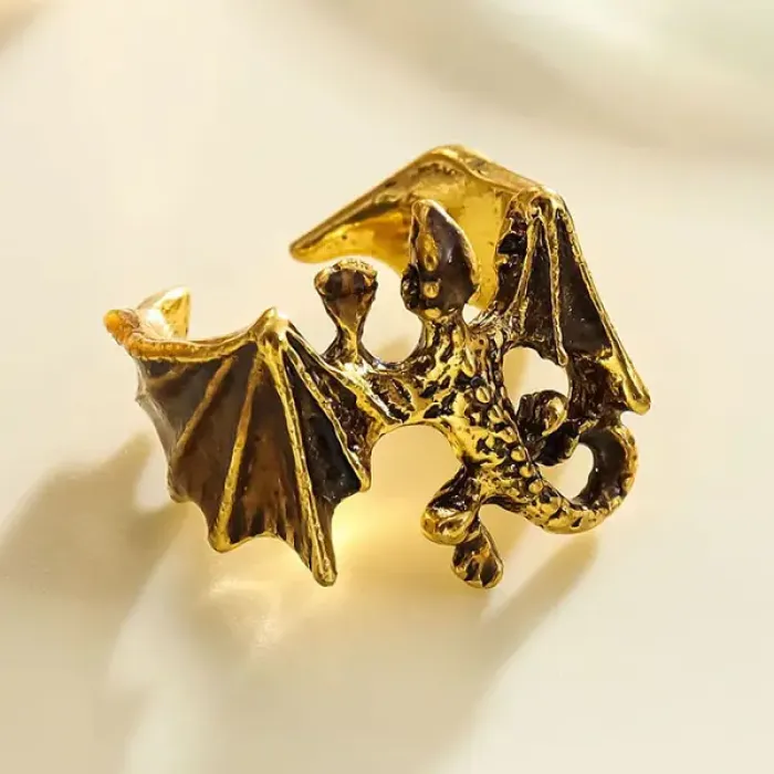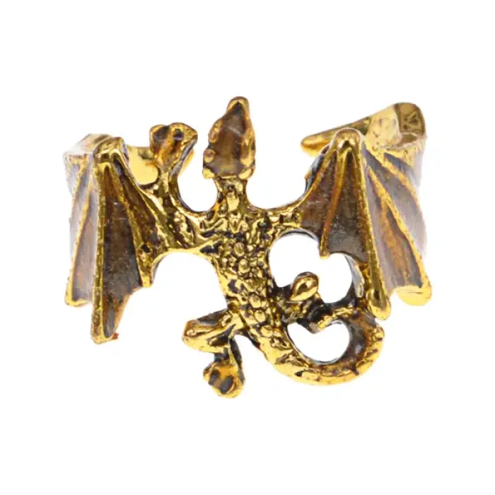 Безразмерное кольцо с дизайном дракона. Материал — металл с золотым покрытием.