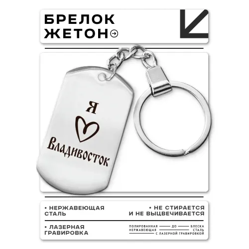 Брелок-жетон сувенирный из полированной нержавеющей стали с гравировкой.