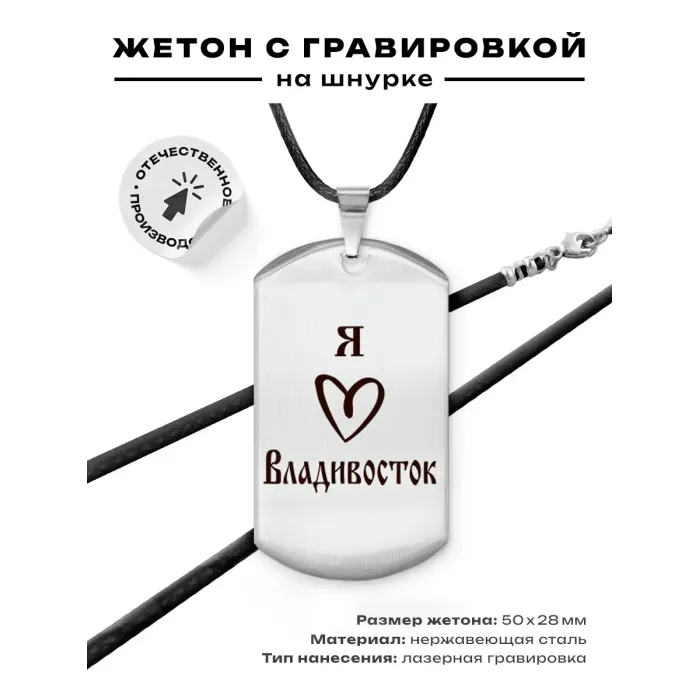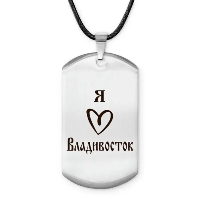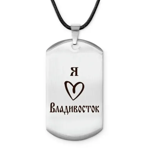 Амулет-жетон «Я люблю Владивосток» — сувенирный аксессуар из полированной нержавеющей стали с гравировкой.