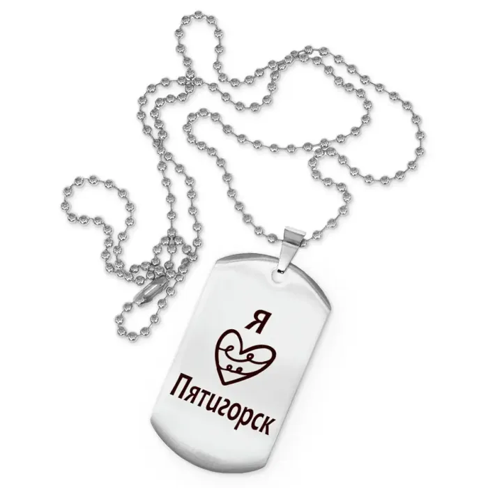 Сувенирный жетон на цепочке с гравировкой «Я люблю Пятигорск».