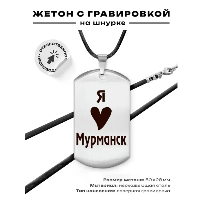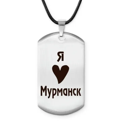 Амулет-жетон «Я люблю Мурманск» — сувенирный аксессуар из полированной нержавеющей стали с односторонней гравировкой.