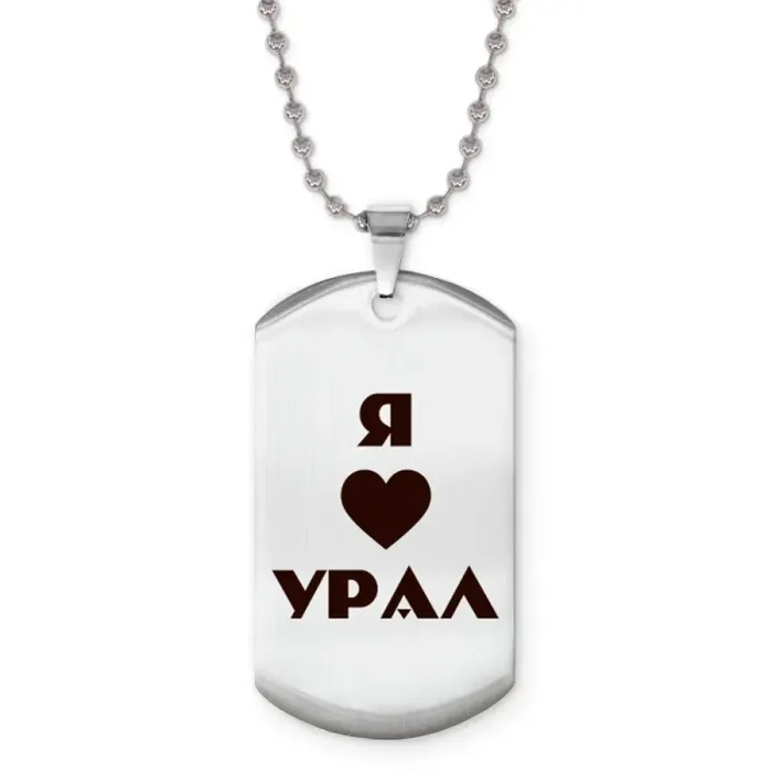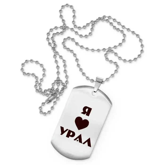 Сувенирный жетон на цепочке с гравировкой «Я люблю Урал».