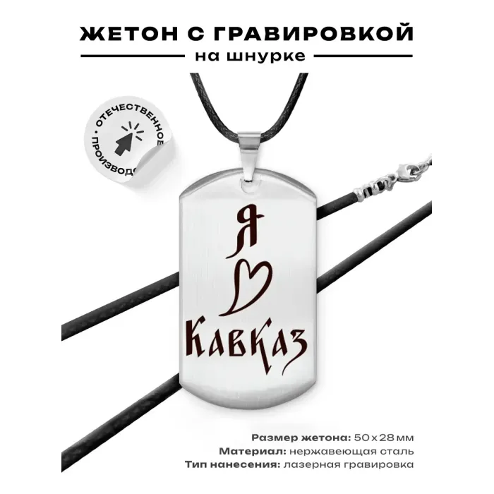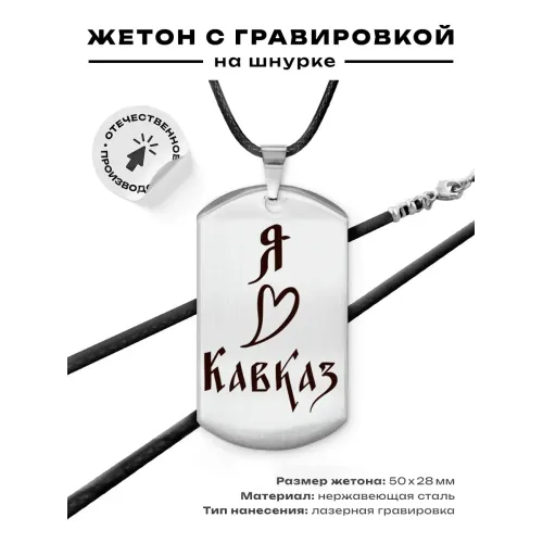 Амулет-жетон сувенирный из полированной нержавеющей стали с гравировкой.