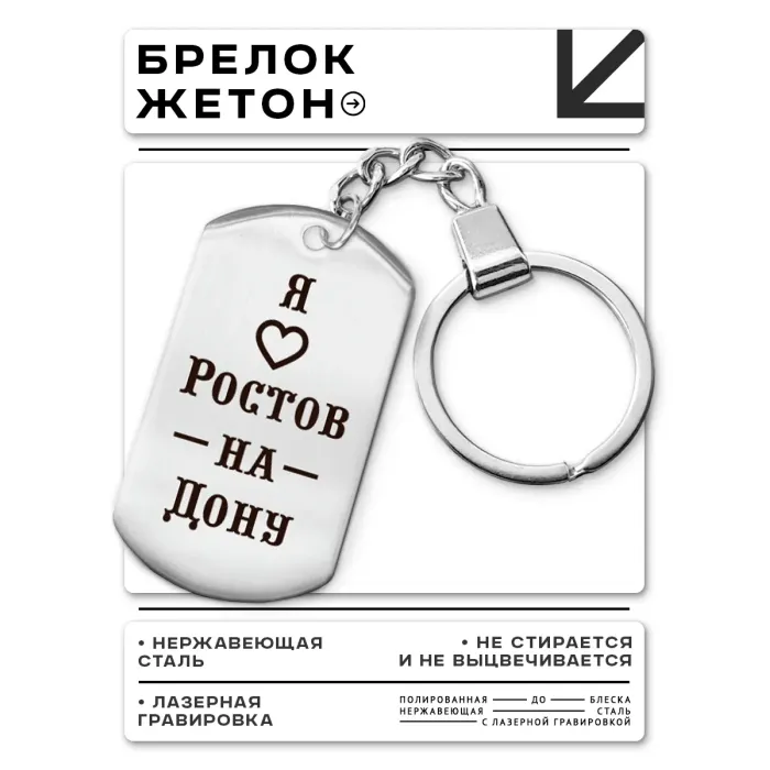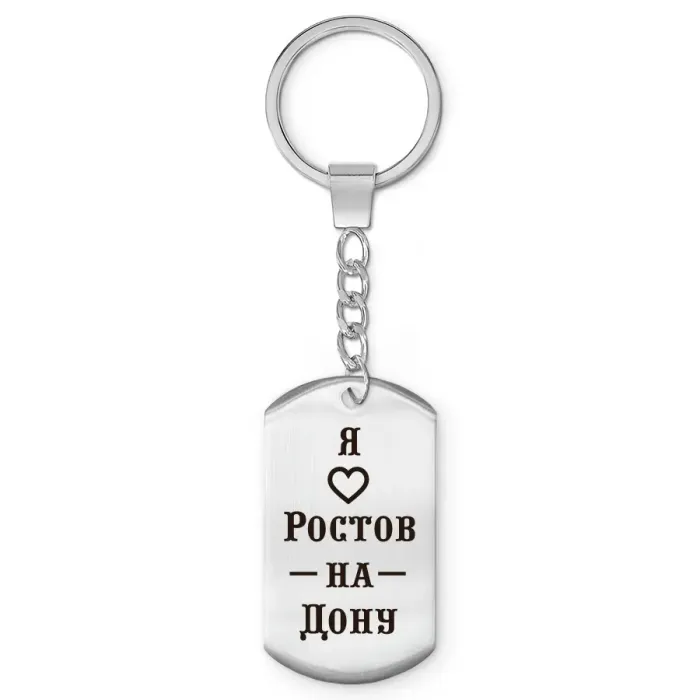 Брелок-жетон сувенирный с гравировкой «Я люблю Ростов-на-Дону» из полированной нержавеющей стали.
