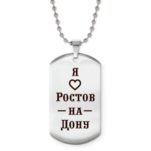 Сувенирный жетон на цепочке с гравировкой «Я люблю Ростов-на-Дону» из полированной нержавеющей стали.