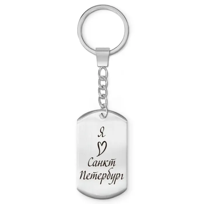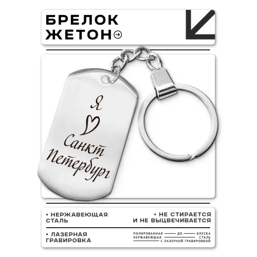 Брелок-жетон сувенирный из полированной нержавеющей стали с гравировкой «Я люблю Санкт-Петербург».