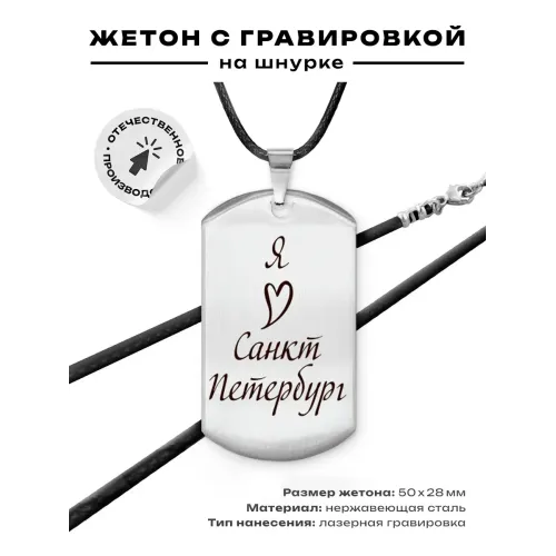 Сувенирный амулет-жетон с гравировкой «Я люблю Санкт-Петербург».