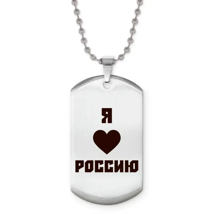 Жетон на цепочке «Я люблю Россию» — сувенирный аксессуар из полированной нержавеющей стали с гравировкой.